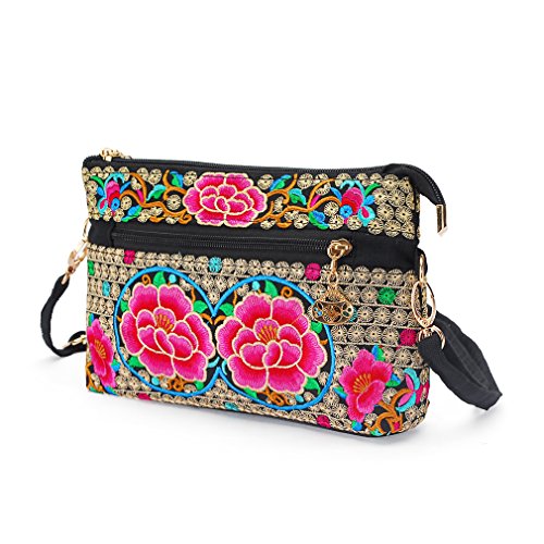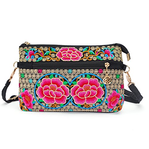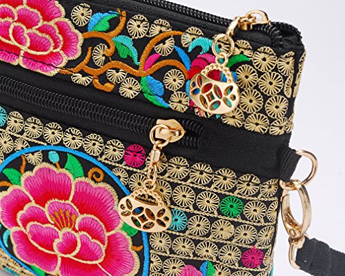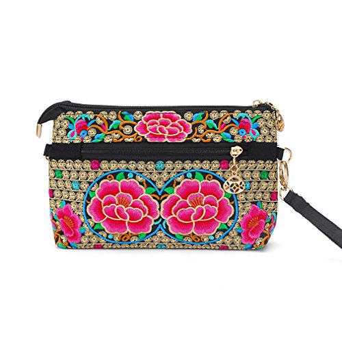 Fat Cat Warm for you Embroidery Petite Double Zip Hipster Crossbody Bag