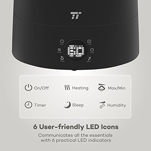 6 User-friendly LED Icons Knowing what your humidifier is doing is important, that's why there are 6 user-friendly LED icons that let you know what's going on. From heating, humidity, timer, and sleep mode, you'll always know what your humidifier is doing. Press each of the icons to activate each feature, or to adjust the current misting level.
