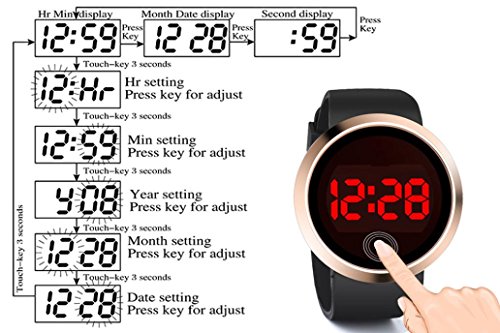 -. Title : Waterproof Men's LED light Touch Screen Day Date Fashion Silicone Wrist Watch large face display digital