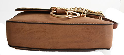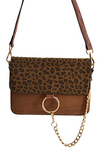 -. Brand : MW -. Color : Taupe -. Department : womens -. Feature : Faux leather body construction with contrasting leopard P.R.Int trim / Front gold tone chain accent. Magnetic button closure flap. Top zipper closure / Interior 1 wall zip pocket and 2 slip pockets. Exterior back zipper pocket / Detachable adjustable cross body strap - Length 48" / Dimensions: 9" L x 6" H x 2" W approx. -. PackageQuantity : 1 -. ProductGroup : Shoes -. ProductTypeName : HANDBAG -. Size : Small -. Title : leopard animal cheetah golden chain cross body top handle satchel purse