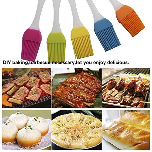 5pcs Food Grade Silicone Baking Pastry and Basting Brushes Heat Resistant Durable Kitchen Utensils Easy Clean Perfect for BBQ Meat Grilling Marinating Meat Steaks & Much More