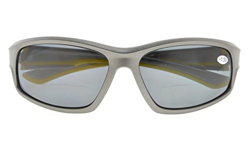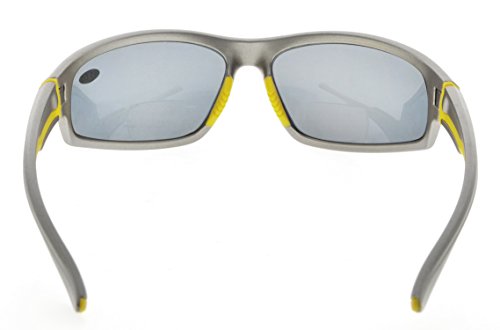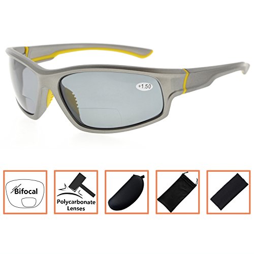 TR90 Sports Polarized Bifocal Sunglasses For Men And Women,Baseball Running Fishing Driving Golf Softball Hiking Grey Frame Grey Lens+2.5
