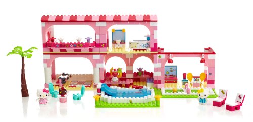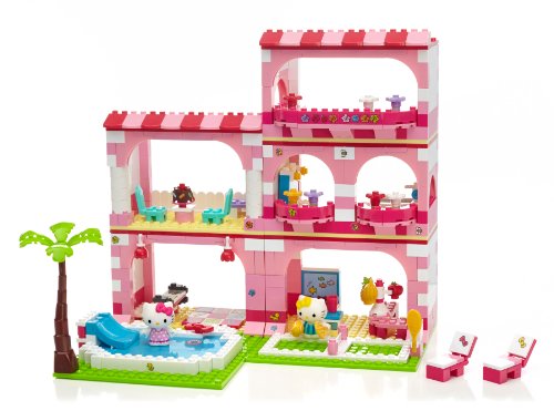 It's time for a sunny vacation with Hello Kitty and all her friends with the Hello Kitty Vacation Resort buildable playset from Mega Bloks! You can build a whole resort for Hello Kitty and all her friends to explore. In the summer sun, Mimmy and Hello Kitty can take a dip in the pool in their most adorable swimsuits. Ideal for children age 6 and up.Feature