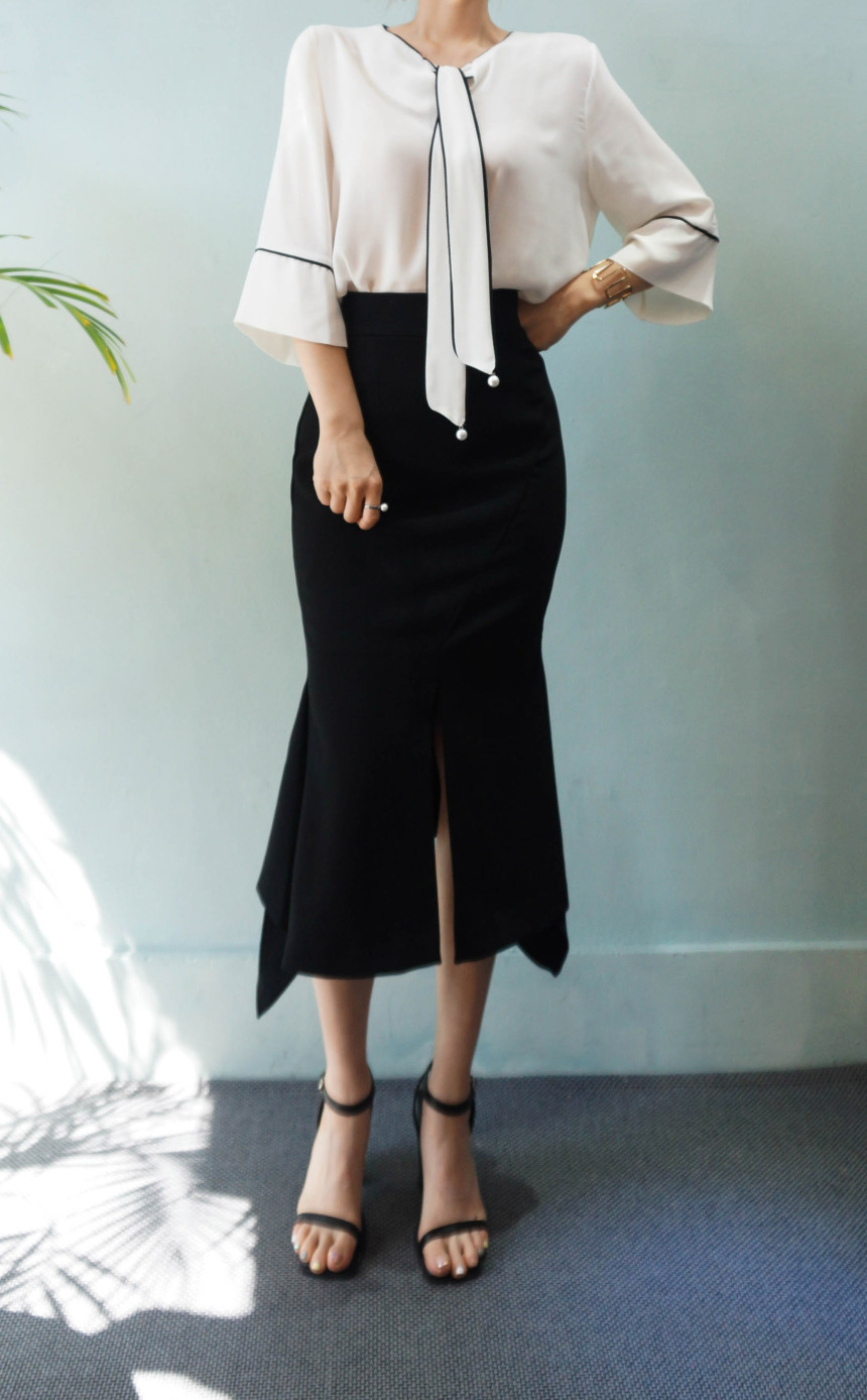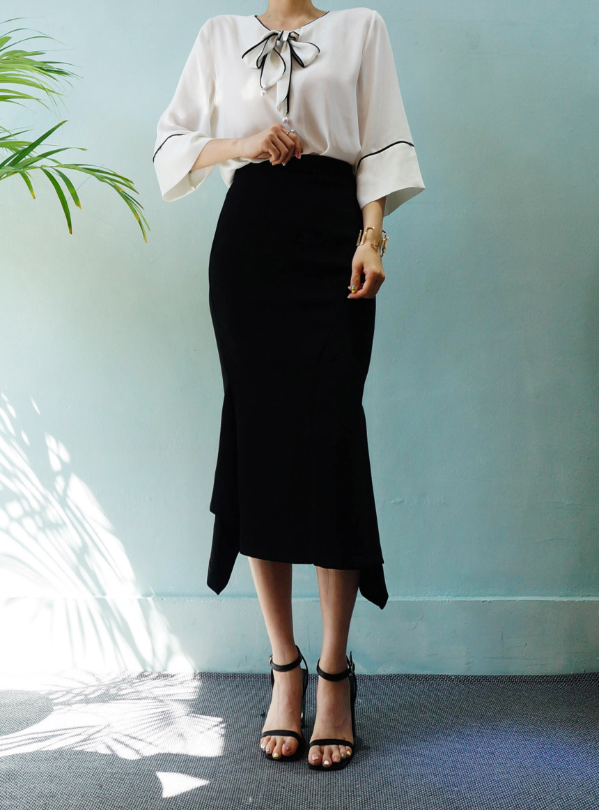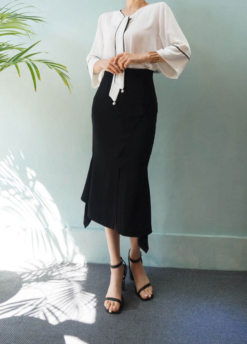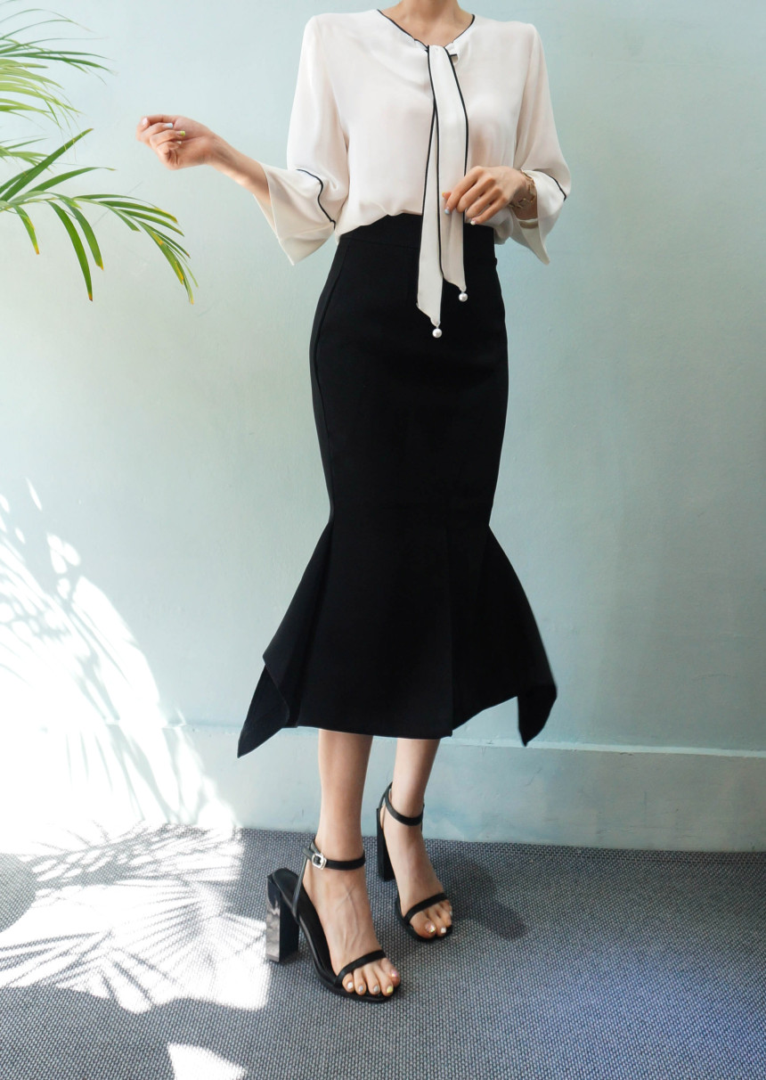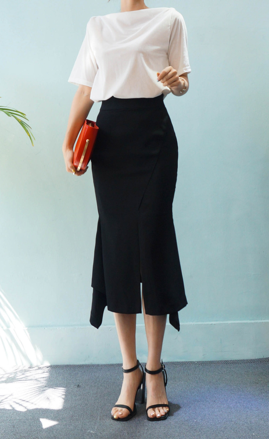 Mermaid Midi Skirt 2col Unique Emotional Stretch Look ELEGANT