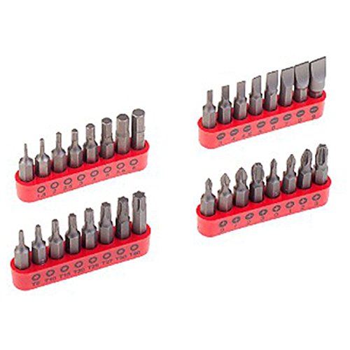 -. Feature : 32 Schrauberbits in 25 mm Länge für den häufigen Gebrauch im Heimwerkerbereich. Langlebige Schrauberbits für alle gängigen Schraubentypen und Größen. / 1 magnetischer Universalhalter für schnellen Bitwechsel und guten Halt der Schraube im Bit. / 1 praktischer Handschraubendreher mit Ratschenfunktion und Bitgarage im Handgriff. / 12 Steckschlüssel zum Verarbeiten von Sechskantschrauben. / Praktisch untergebracht in der handlichen Aufbewahrungsbox.