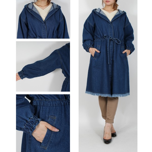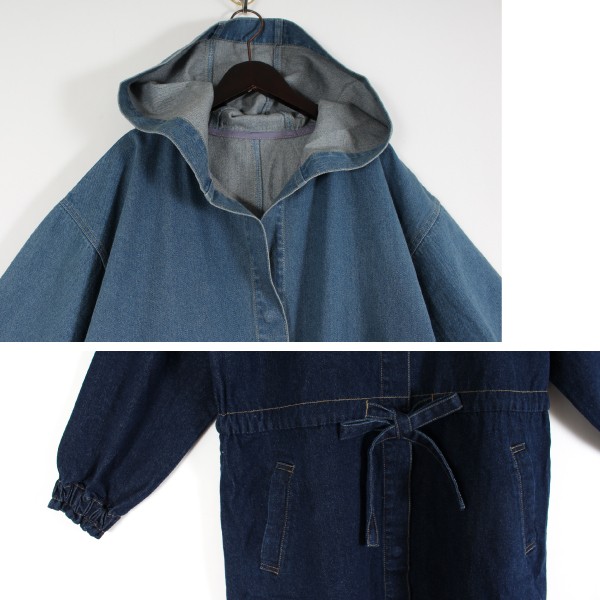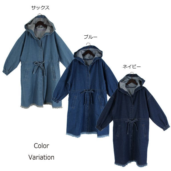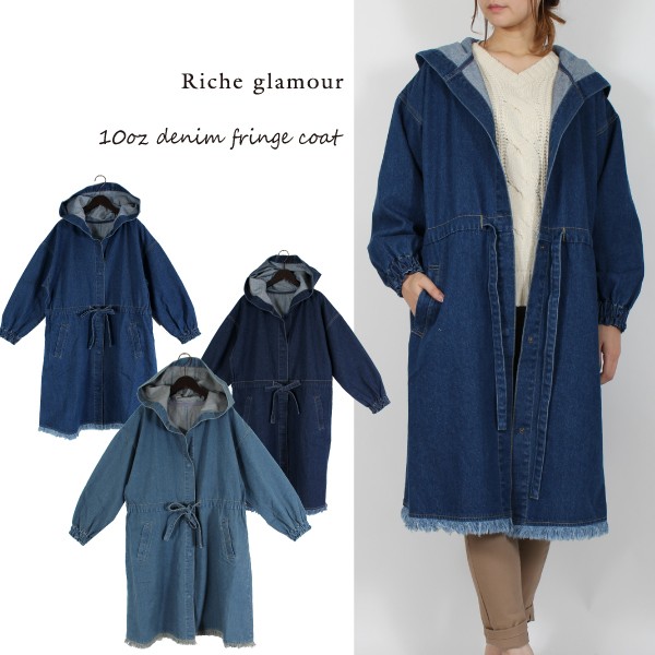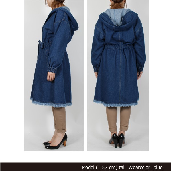 10オンスデニムのフリンジ フード付きコート☆