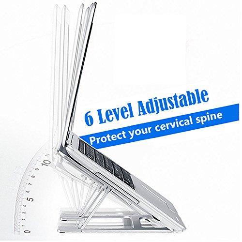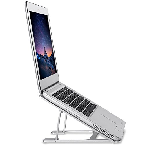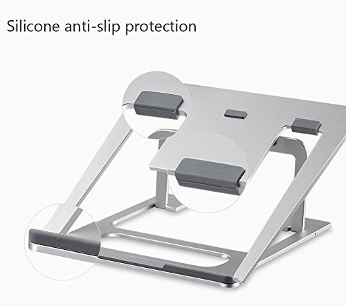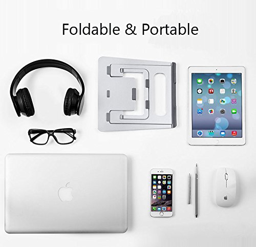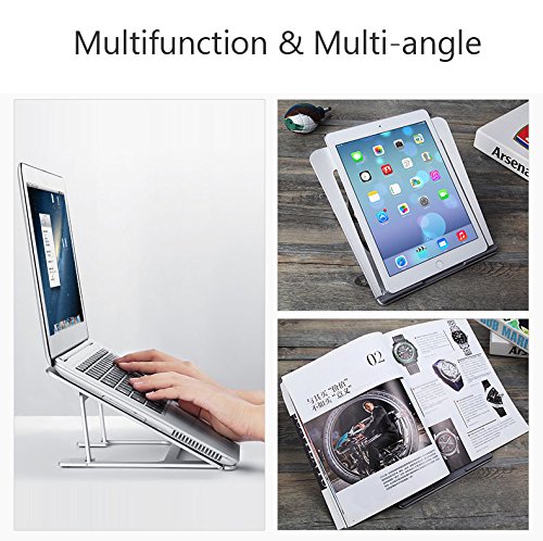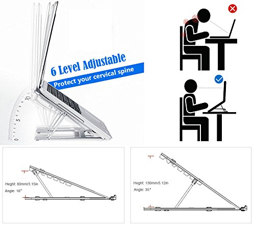-. Feature : Foldable & Portable: Folded in compact size, only 0.99Lb/450g, Portable and simple into the laptop bag. / Adjustable angles design: 6 angle levels adjustment, protect your cervical spine, you can select ergonomic angle for best comfortable viewing. / Universal compatibility: the aluminum cooling stand is widely compatible with all sizes of iPad laptops, macbook (up to 15") and other tablets. With this stand can prevent your machine overheating efficiently. / Stable: 4mm thickness aluminum alloy material, solid and durable. Meticulous and precise surface treatment processes, high-grade appearance. / Superior quality aluminum provides firm, durable and lightweight performance, portable for daily use. Anti-skid silicone foot brings your devices dual protection.