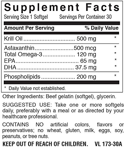This Krill Oil dietary supplement from Natural Nutra is gluten-free. There are no artificial colorings, flavorings, preservatives, wheat, milk, eggs, soy, peanuts, or tree nuts.
