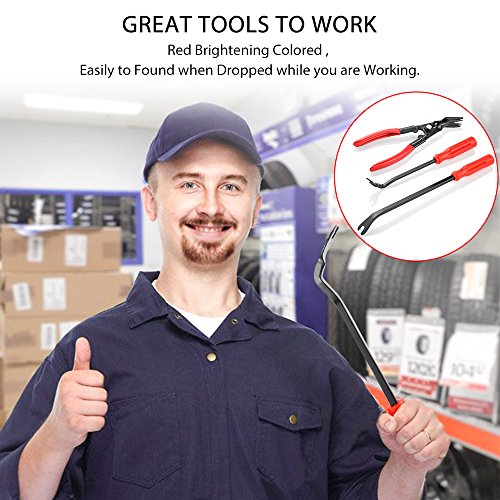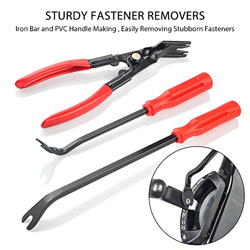 - RESISTS BREAKING - 11Pcs Trim removal tools is Made Of High Quality Nylon Fiber which can Reduces Scratches and Will Not Break Or Bend Easily Like Abs Plastic Under Pressure ; 3Pcs Metal Clip Plier Set are Rigid Enough to Help Remove Trim or Fastening
