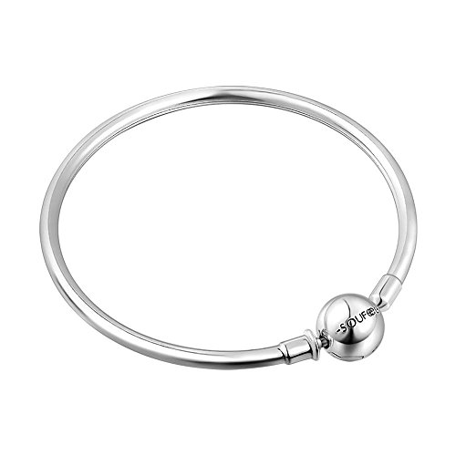SOUFEEL 925 Sterling Silver Basic Charms Bangle with Round Silver Clasp Best Gifts for Your Love