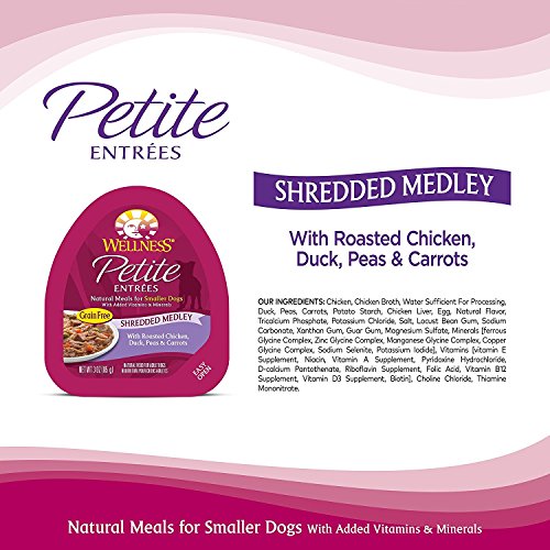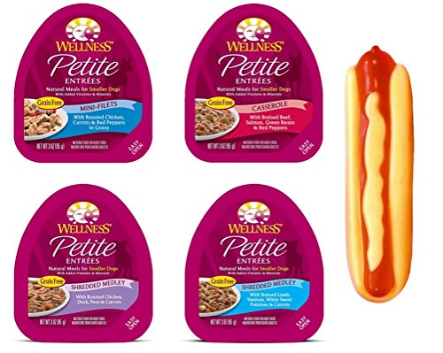 -. Title : Wellness Petite Grain Free Natural Small Dog Food 4 Flavor 8 Can with Toy Bundle, (2) each: Lamb Venison, Chicken Duck, Beef Salmon, Chicken Carrots (3 Ounces)
