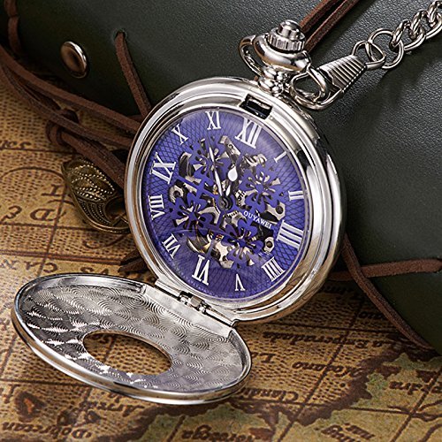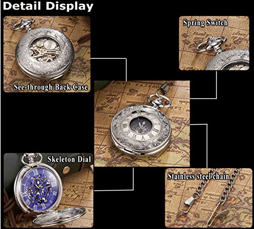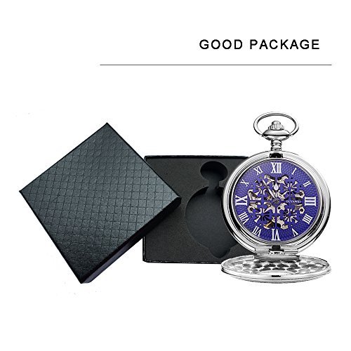 -. Feature : Design Style - Special skeleton Design, blue hollow Dial.The Best Gift to Express Your Love. Unique skeleton dial with Roman Numerals carving Mechanical Men Pocket Watch design. blue hollow dial, looks very Elegant, Smart, Vintage and fashionable! / Hight Quality - 100% brand new with excellent workmanship, Precise mechanical movement, Elegant case with long chain, Good touch feeling. fit for casual environment and business occasion. / Battery Needless - No need to use battery, Twisting the top button on the spin, Swing the watch 15-20 times , Please wind up the watch before every usage and keep away from magnet to avoid making it stop working. / Fashion Accessory - Attractive vintage design with unique dial, Add undeniable style and class to your daily life and fashion, An "Fashion envoy" at the suit, vest, pants or dress for gentlemen or ladies! / Best Choose- Comes with good quality gift box. Perfect gift for your love and family or yourself, Best Father's Day, Mother's Day Gift, Superb Christmas Gift, Birthday Gift, Wedding Gift etc.