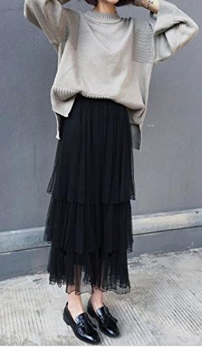-. Title : (エンジェルムーン) AngelMoon ティアードスカート チュール ロング スカート ミモレ丈 レース レディース