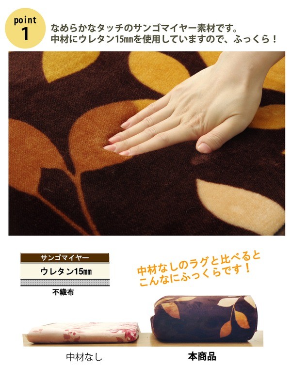 やわらかな肌触りのマイヤーを使用したラグです。ホットカーペットカバーとしてもご使用いただけます。多サイズ展開でお部屋にぴったりのサイズを選べます。