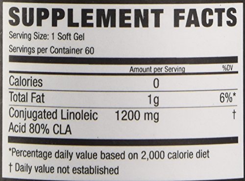 -. Brand : NLA -. Feature : Natural fat burning qualities -. Label : NLA -. LegalDisclaimer : Actual product packaging and materials may contain more and different information than what is shown on our website. We recommend that you do not rely solely on the information presented and that you always read labels, warnings, and directions before using or consuming a product. Please see our full disclaimer below. -. Manufacturer : NLA -. ProductGroup : Health and Beauty -. ProductTypeName : PERSONAL_CARE_APPLIANCE -. Publisher : NLA -. Studio : NLA -. Title : NLA For Her CLA, 1200 mg, 60 Count
