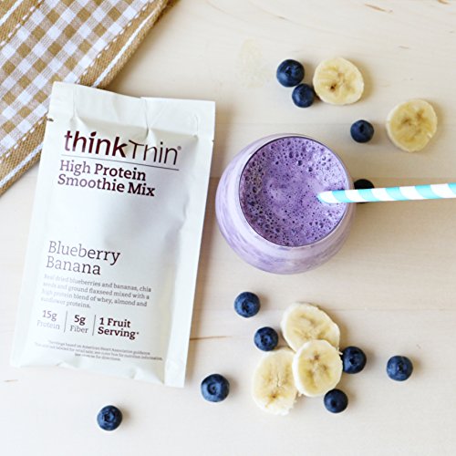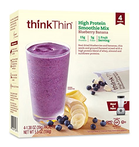thinkThin High Protein Smoothie Mix, Blueberry Banana, 1.38 oz Packet (4 Count)