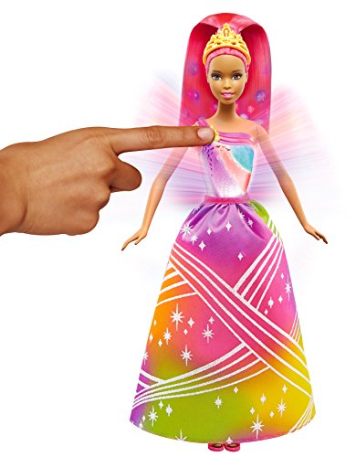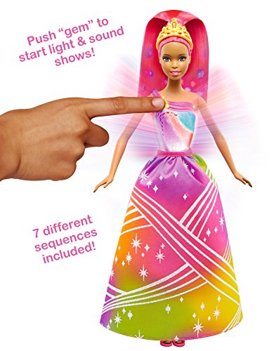 - Enter a magical kingdom of rainbows with this Barbie princess doll who comes to life with lights and sound!