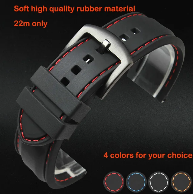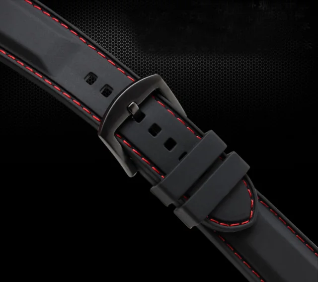 Watch band 22mm Black Silicon Rubber Waterproof Divers Watch Strap Band Red Thread Size Free Shipping