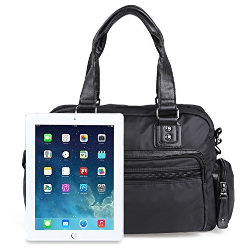 -. Feature : Gym travel tote bag can be used as a weekend bag, overnight bag, gym bag, carry on bag for airplanes. Also makes a great gift for your friends and family. / Material:Luxurious Waterproof Nylon and Microfiber,Fiber Lining With dual top faux leather hardware(handle drop: 9.5"),convenient zipper pockets for your essentials. / Detachable and adjustable shoulder strap included can be easily turned into a messenger bag,convenient zipper pockets for your essentials. / Multiple pockets including 1 main compartment, padded tablet pocket, 2 side zippered pocket and 2 zippered pocket in front and 1 zipper pocket on the back. / Product dimension:17.5 inch L x 5 inch W x 10.5 inch H, Weight: 0.5KG.