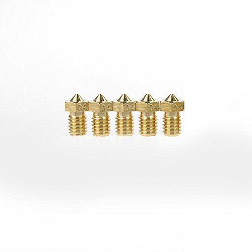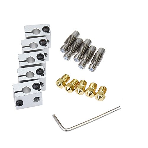 Zomiee 5pcs Length Extruder 1.75mm Tube + 5pcs 0.4mm Brass Extruder Nozzle Print Heads M6 Threaded + 5pcs Aluminum Heater Block Extruder Kit for E3D V6 1.75mm ABS PLA Filament 3D Printers