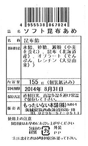 原材料:水飴、砂糖、澱粉(小麦を含む)、昆布(北海道産)、オブラート(でんぷん、レシチン(大豆由来)