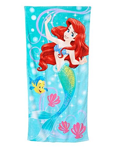 Dry off after an undersea adventure with this Little Mermaid beach towel. In pink. FEATURES 28'' x 58'' Supersoft velour Terry reverse Ariel & Flounder graphics CONSTRUCTION & CARE Cotton Machine wash Imported