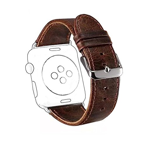 -. Feature : Material: leather material, smoothy and stretchy for good hand feeling, Retro appearance and personalize your Apple Watch. NOTICE:The natural crack texture will appear after bending the watch band. / SECURITY: Band comes with Apple Watch lugs/connectors on both ends, which locks onto apple watch interface precisely and securely. It is easy to install / remove. / Watch band buckle with solid quality- trusted stainless steel buckle ensure the stability. / Top Leather Iwatch Strap - This fashionable Watch band features high quality craftsmanship with a comfortable feeling of genuine leather on your wrist.? Includes anti-slip and sweat absorbent . / SIZE: 38mm Fits wrists (155mm-210mm),42mm Fits wrists (155mm-215mm).