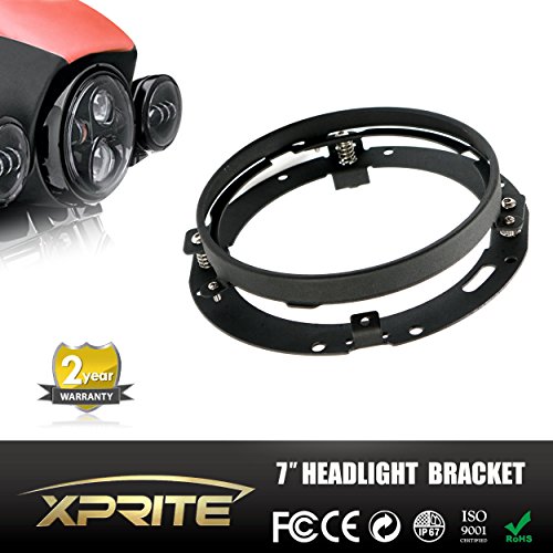 Xprite 7" Inch Black Round Headlight Ring Mounting Bracket for Harley Davidson Projector Headlight Mount