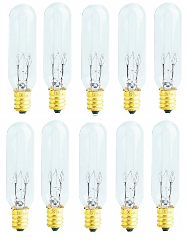 Pack of 10 Bulbs 15 Watt T6 Tubular 15T6 Light Bulb for Himalayan Salt Lamps, Fits E12 Socket, Candelabra Base