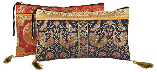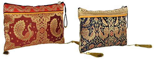 These zipped clutch bags come from India. Each Potli bag is intricately designed by artisians, adorning beautiful patterns inspired from the rich Indian heritage. These clutches come handy for meticulously organizing jewellery,phones, makeup or money. It can hold phones upto the size of iphone 7. On top of it, these can be used as carriers of birthday or wedding gifts. The ethnic designs would bring out the beauty of your vibrant evening dresses. These are great for keeping small jewelry, coins, or other treasures, as well as playing the elegant gift pouch role!The well padded layers protect your valuable jewelry from any friction. This value set comes in 2 pouch bags. Note: The color of border may vary, as these are hand made there is little variation in every piece and each piece is uniqueFeature