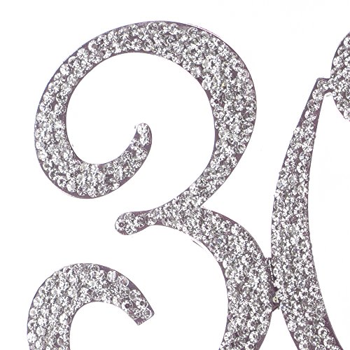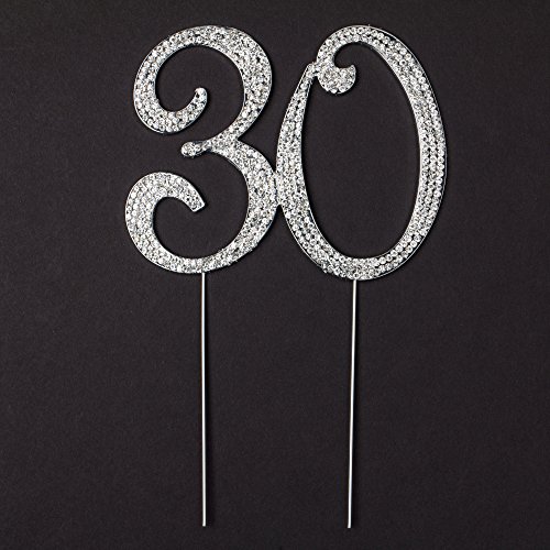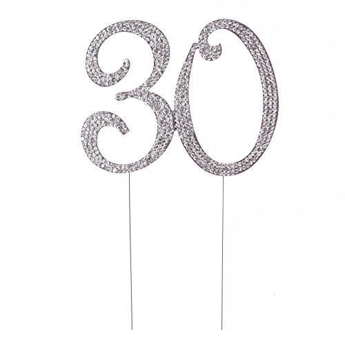 30 Cake Topper for 30th Birthday or Anniversary Silver Crystal Rhinestone Party Decoration (Silver)