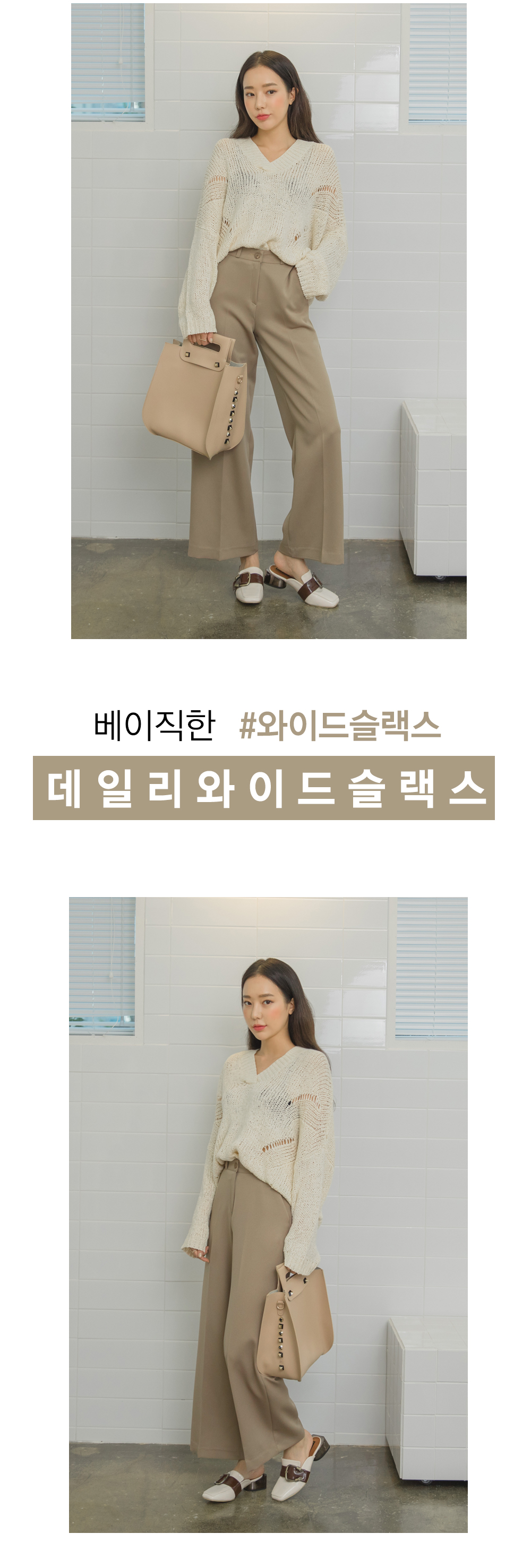 트렌디한 와이드한 핏으로 여리여리하면서 멋스럽게 연출해주구요~