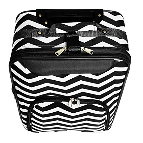 Studio : S E Publisher : S E Product Description Have a safe travel with this all new classic geometric chevron themed suitcase. This can carry loads of your items safely to your destination since it's durable. A great item to buy. Dimensions: 21 inches high x 13 inches wide x 8 inches deep. Features: Expandable, Locking, Multi-Compartment, Fashion, Lightweight, Softsided and Durable | Materials: Polyester 0