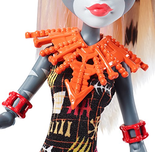 Get away with some of your favorite Monster High character dolls dressed for frightseeing and fierce island fun! These beast friends are ready for a wild vacation in outfits inspired by jungle elements. The fashions are fierce and the accessories to-die-for! Articulation at the shoulders, elbows and knees adds to the fun with more scary cool poses and storytelling possibilities. Choose from fiery Jinafire Long doll, daughter of a Chinese Dragon, in a tiki mask-inspired print with flame-detailed shoes, chest plate, jewelry and hairpiece; clawesome Meowlody doll, daughter of a werecat, wearing a dress with an iconic jungle print, warrior-inspired collar and jewelry, fishbone-detailed shoes and a headpiece; and boo-tiful Spectra Vondergeist doll, daughter of the Ghosts, in a floral print with jewelry, shoes and headpiece that mix chain pieces with leafy accents. Monsterrific details, like signature hair coloring, showcase their freaky fabulous flaws. Ghouls at home will love learning to embrace what makes them unique along with their beast friends from Monster High. Collect them all for the vacation of an un-lifetime! Includes fashion doll wearing clothing and accessories. Each sold separately, subject to availability. Dolls cannot stand alone. Colors and decorations may vary.Feature