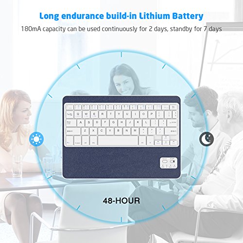 -. Feature : New iPad 2017 9.7 inch tablet special designed removable Bluetooth keyboard case cover ,lightweight ,portable and fashionable / Bluetooth 3.0 connectivity ,compatible with Android ,IOS and Windows OS ,switched with shortcut keys Q/ W/ E / One pcs iPad tempered glass protective film was contained in the box too, give your loved new iPad 360-degree protection / Made of high-quality artificial leather, offers the absolute all-round protection. Your tab is protected from scratches, dust / Long endurance build-in Lithium -battery ,180mAh capacity can be used continuously 2days ,standby 7 days . Free technical support and 13 months manufacturing warranty