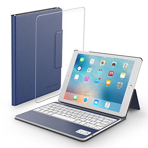 -. Title : iPad 9.7” 2017 Keyboard Case with Detachable Bluetooth Keyboard and Tempered Glass Protective Film , Vastdon Lightweight Stand Cover Case for Apple New iPad 9.7 2017 Tablet (Blue)
