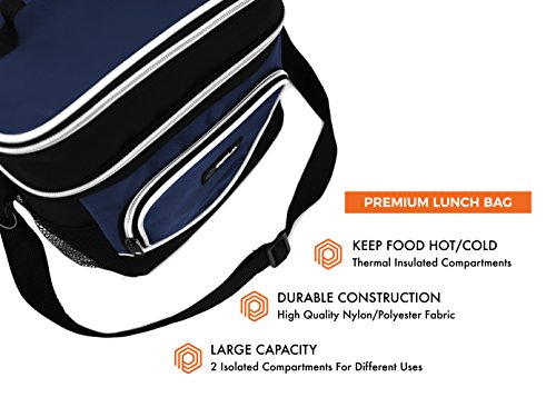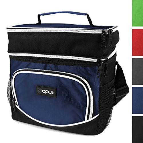 Premium Insulated Dual Compartment Lunch Bag by OPUX | Durable, Functional, Easy To Use (Navy)