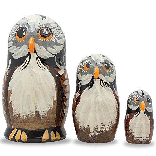 -. Title : 5" Set of 3 Owl Family Wooden Russian Nesting Dolls