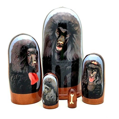 -. Feature : Black poodle dog breed Russian wooden nesting doll. Signed. / Size: 7" Tall, 3" Diameter, set of 5 / Made in Russia from real wood. Imede is a combination of P.R.Int and hand painted. / Each item is hand painted and may have slight differences in details and color. / Shipping from Los Angeles, CA Combine shipping available.