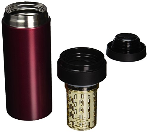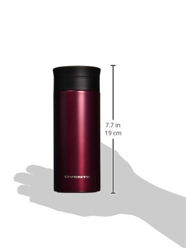 Ovente Travel Mug with Flavor Infuser, Hot/Cool Thermos, Vacuum Insulated, Stainless Steel, Nickel Brushed, 12 oz, Wine Red (MSA12R)