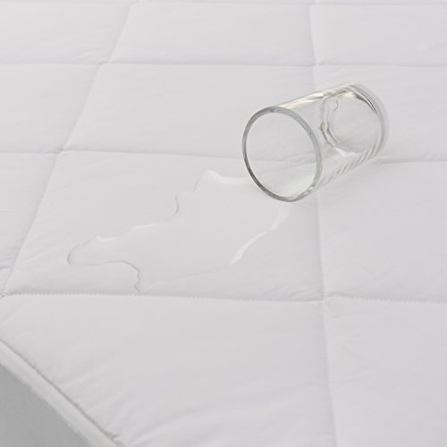 -. Feature : Waterproof Backing quietly protects mattress from spills and stains / Stain Release Fabric treatment keep Matress pad looking like new. / Brushed Top Fabric is peachy soft and feels luxurious / Filling is Antimicrobiallly treated to resist growth of odor causing bacteria. / Our "Stay Made" Stretchy knit sidewall skirting fits mattresses up to 18 inches deep.