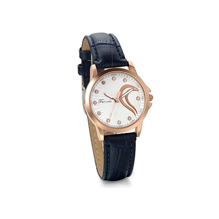 JewelryWe 레이디스 손목시계 워치 쿼츠 엘레강트(elegant) 비지니스 캐주얼 시계 하트 합가죽(껍질) 밴드 학생 사회인 선물로도 (블루)