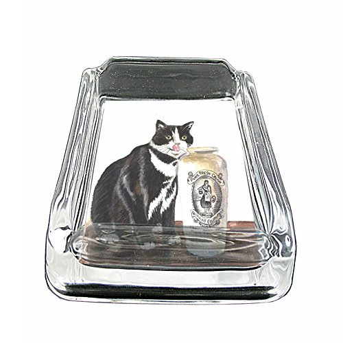 -. Title : Perfection In Style Glass Square Ashtray Vintage Cat Design 020