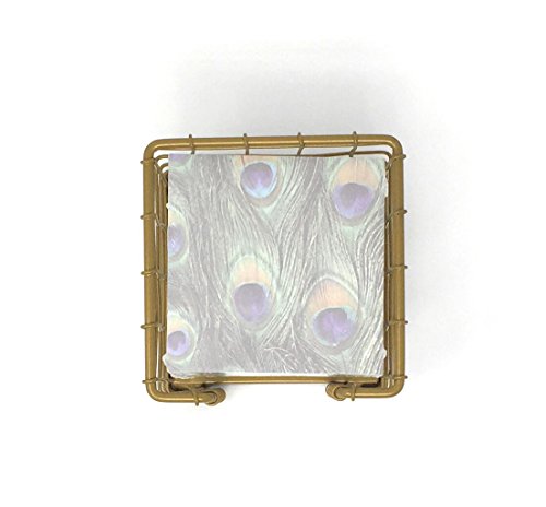 Gold Metal Note Paper Holder with 500 Peacock Print Sheets - Stationery Gift Home Decor Office School Business Supplies