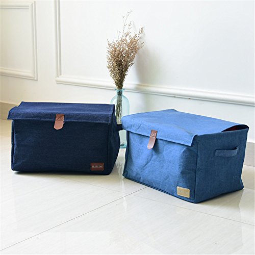 -. Title : Yiliag Multifunction Denim Clothes Storage Boxes Lid Laundry Basket With Double Handles-Light Denim