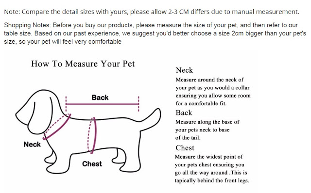 XS Neck Girth: 20cm, Chest Girth: 30cm Back Length: 19cm
