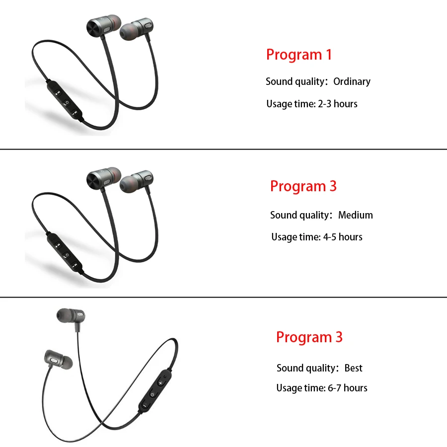 Talk time and Music time:Program A 2-3 hours,Program B 4-5 hours,Program C 6-7
