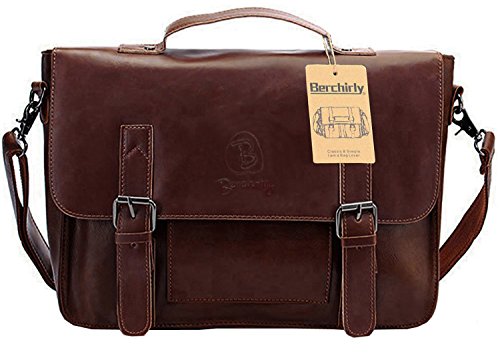 -. Title : Vintage Leather Briefcase, Berchirly PU Leather Shoulder Messenger Bag Laptop- Upgraded Quality!