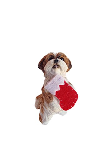 Sandicast Gold and White Shih Tzu Holding Stocking Christmas Ornament