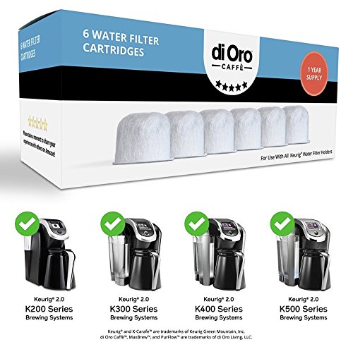 di Oro Caffè Activated Charcoal Replacement Water Filter Cartridges for Keurig 2.0 Coffee Machine Brewers - (6-Pack) 1-Year Supply
